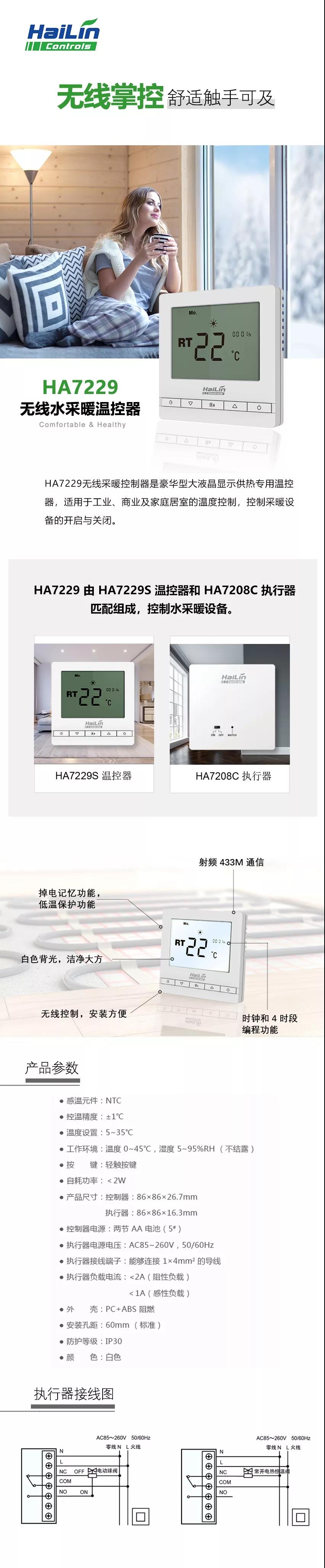 HA7229無線采暖控制器是豪華型大液晶顯示供熱專用溫控器,適用于工業(yè)、商業(yè)及家庭居室的溫度控制,控制采暖設備的開啟與關閉。