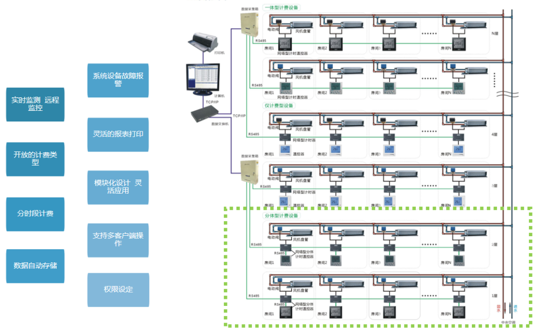 公攤監(jiān)控計(jì)費(fèi)單價(jià)=(用電費(fèi)用+用水費(fèi)用+管理費(fèi)+設(shè)備折舊基金+設(shè)備維修基金+附加費(fèi))/(全部風(fēng)盤末端用量累計(jì)和)核定單價(jià):我們將協(xié)助管理員根據(jù)現(xiàn)場設(shè)備、環(huán)境以及用戶使用情況,通過與用戶協(xié)商并實(shí)地核定。