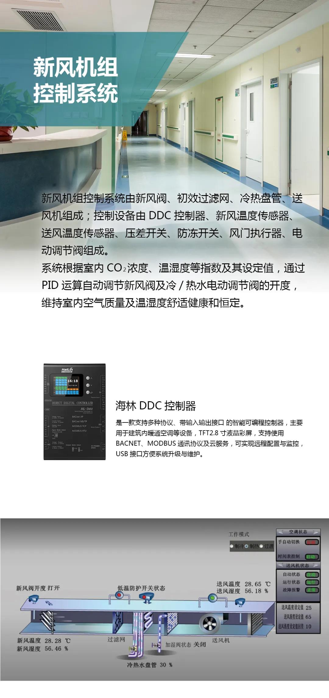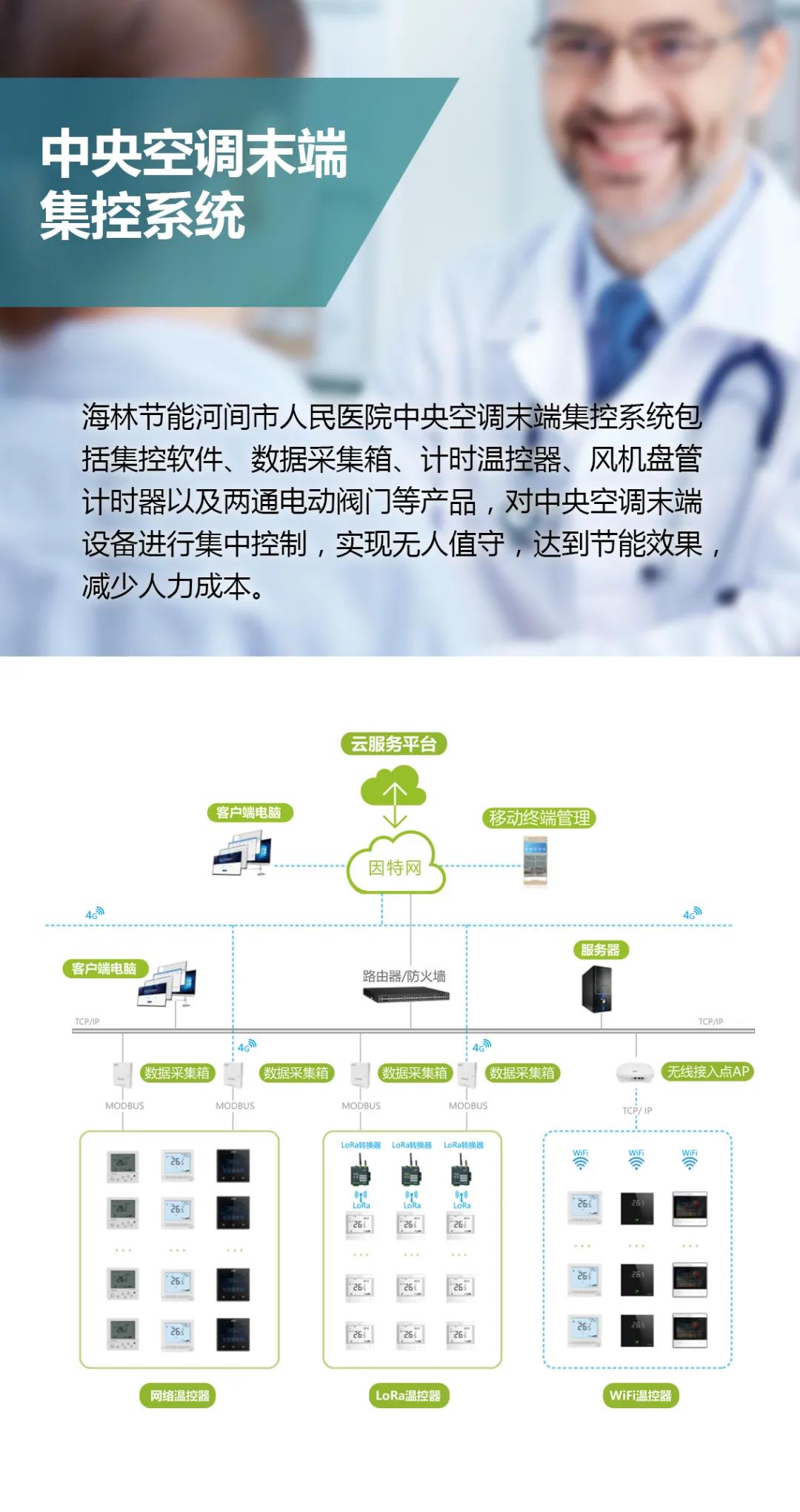 海林節(jié)能作為暖通自控設備供應商,為河間市人民醫(yī)院提供了中央空調末端集控系統(tǒng)、水力平衡系統(tǒng)、新風控制系統(tǒng)等技術和設備,為醫(yī)院營造舒適健康和節(jié)能的高品質環(huán)境。