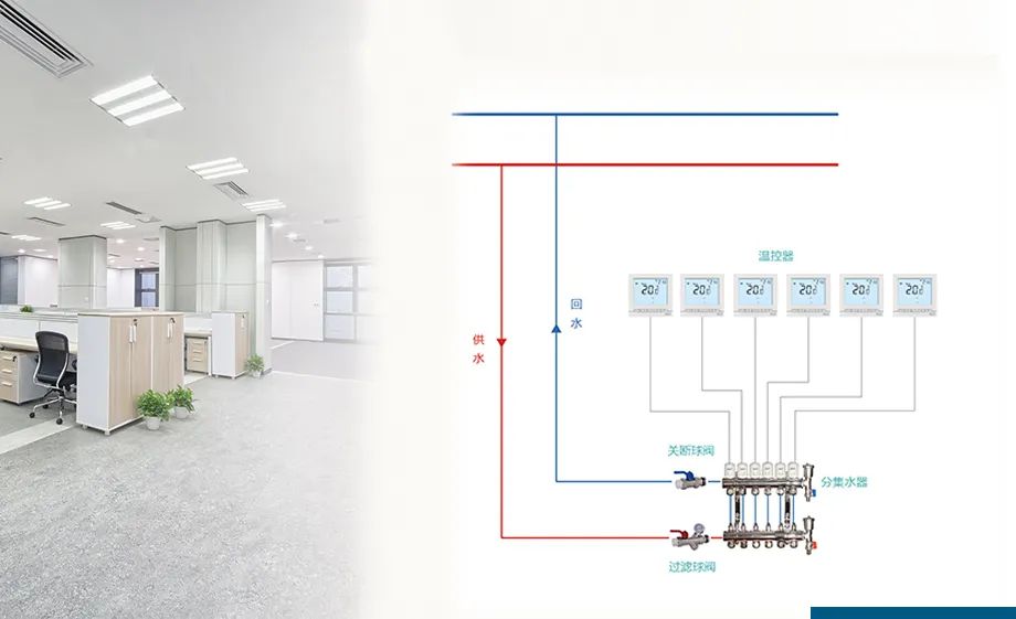 這套系統(tǒng)比較適用于對(duì)溫度要求精準(zhǔn)的別墅、公寓、寫字樓、住宅等。分集水器上每個(gè)控制閥加裝電熱執(zhí)行器,再由各個(gè)區(qū)域的溫控器控制,極大程度滿足個(gè)性化需求,按需、時(shí)智能配置每個(gè)房間的溫度,房間獨(dú)立恒溫、舒適節(jié)能。