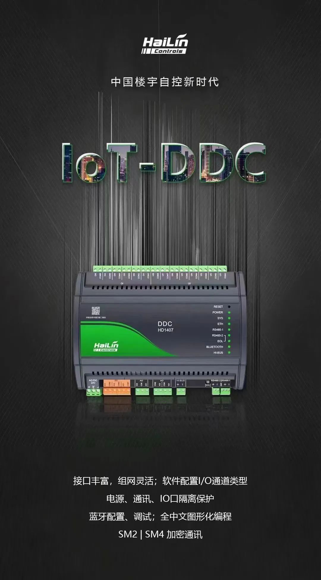 江蘇海林將物聯(lián)網(wǎng)技術(shù)融入DDC,加入更多AI算法,使其具備豐富的接口、靈活的組網(wǎng)并支持多種標(biāo)準(zhǔn)通訊協(xié)議,可以對(duì)樓宇內(nèi)的冷/熱機(jī)組、冷/熱源、空調(diào)機(jī)組、新風(fēng)機(jī)組、照明和給排水等機(jī)電設(shè)備的管理控制,實(shí)現(xiàn)分散控制,集中管理,為樓宇創(chuàng)造優(yōu)質(zhì)的空氣品質(zhì)的同時(shí),實(shí)現(xiàn)節(jié)能降耗。