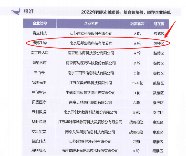 8月2日下午,由南京市政府主辦,江北新區(qū)管委會和市發(fā)展改革委承辦,市宏觀經(jīng)濟研究中心協(xié)辦的2022年度獨角獸、瞪羚企業(yè)發(fā)布會圓滿落幕。會上正式發(fā)布2022年南京市獨角獸、培育獨角獸和瞪羚企業(yè)榜單并授牌。 南京紐邦生物科技有限公司,憑借多項核心創(chuàng)新領(lǐng)先技術(shù),成功躋身2022年南京市獨角獸培育企業(yè)名單。南京紐邦生物科技有限公司繼2019年入選瞪羚企業(yè)榜單之后,2022年又入選南京市“培育獨角獸”企業(yè)。