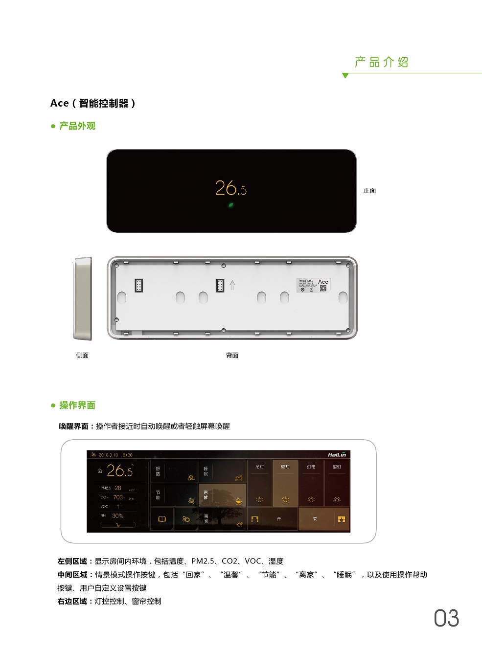 ACE將溫度控制、燈光控制、窗簾控制、新風(fēng)控制、空氣檢測集于一身,采用控制模塊集中控制,控制面板弱電連接方式,極大程度減少布線及人工成本。ACE+自學(xué)習(xí),不斷優(yōu)化用戶使用習(xí)慣,減少生活浪費(fèi),ACE就是您身邊的隱形管家。