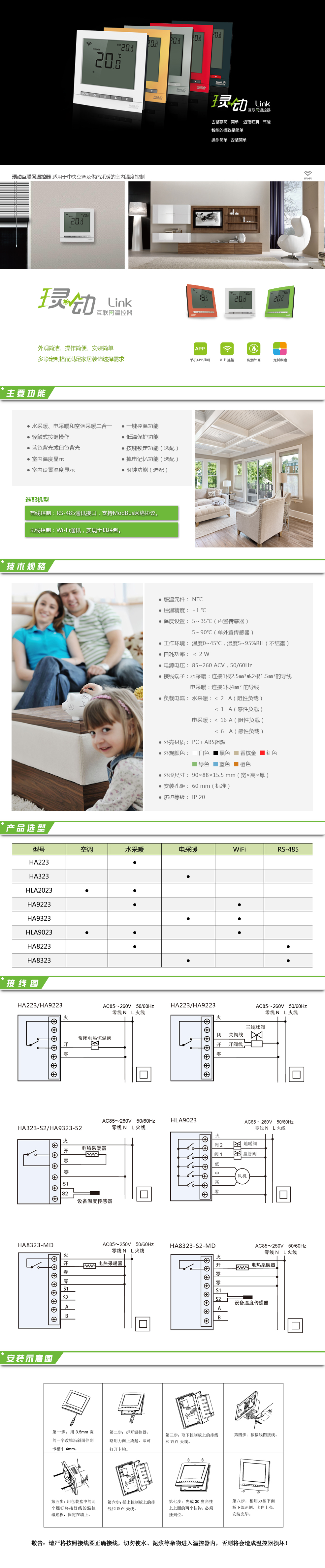 ?動采暖溫控器包括“本地控制、有線控制、無線控制”三種類型,適用于家庭地板采暖系統(tǒng)或散熱器采暖系統(tǒng)的室內(nèi)溫度控制。一體化弧形表面設(shè)計簡潔流暢,多彩定制搭配滿足家居裝飾選擇需求,進口材質(zhì)安全耐候性強,網(wǎng)絡(luò)連接安裝簡單操作便捷,感知靈敏控制精準。
